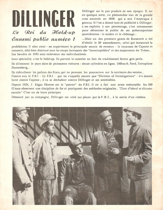 Un scénario brutal imprimé en noir et blanc pour un classique du film noir… Jouant sur l’arme à feu du gangster et l’ambiance carcérale, ce prospectus saura à coup sûr attirer un public cible.
