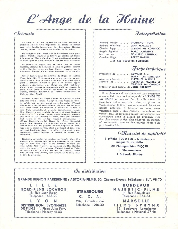 ange_de_la_haine_france_scenario (2) Publié par Le crime s'affiche le 10 février 2019 L’ange de la haine (Astoria, 1953). France scénario. C'est une image pour L’ange de la haine / Jigsaw. Navigation des images ← Précédent