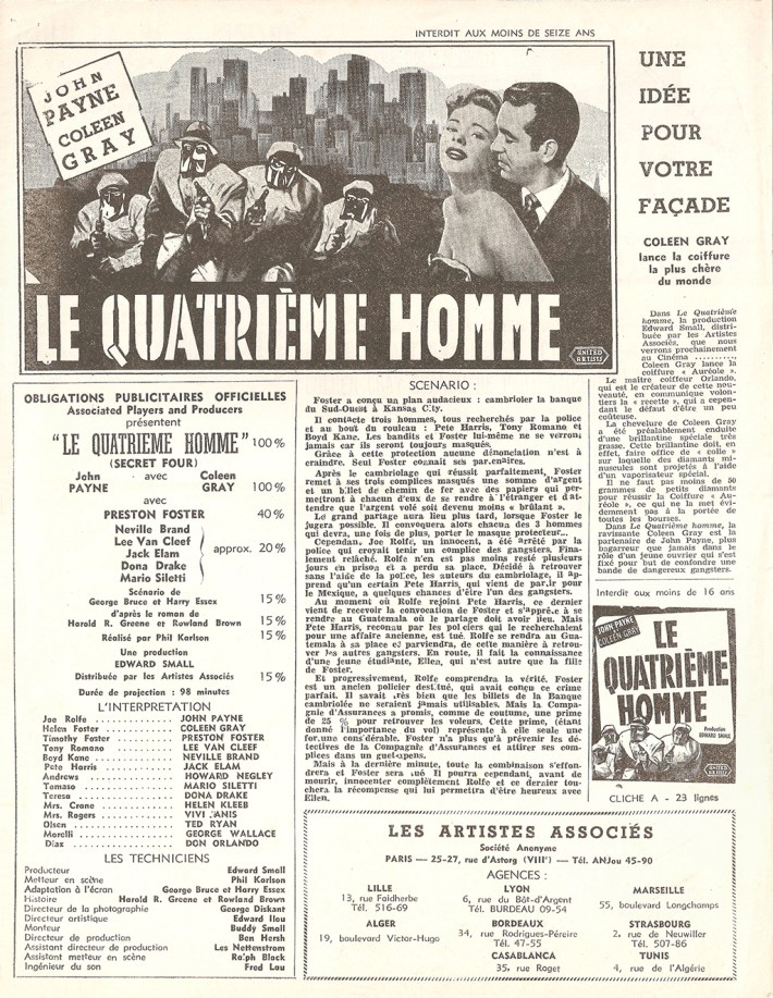 Le quatrième homme (Artistes Associés, 1953). France DP.