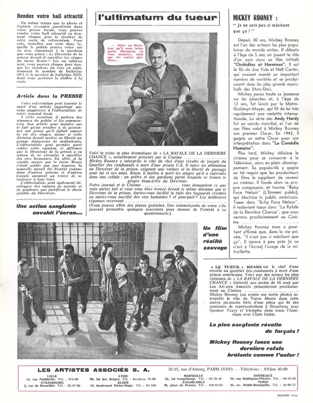 Mickey Rooney, lance sa dernière rafale dans ce drame carcéral. Un rôle costaud et sur mesure!