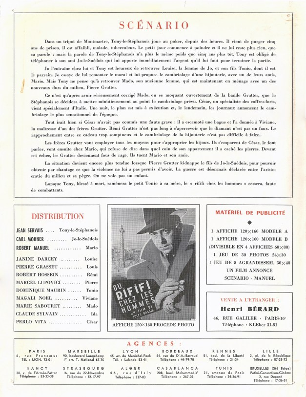 Du rififi chez les hommes (Pathé, 1955). France scénario.