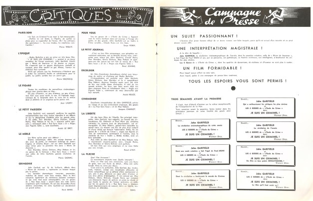 Je suis un criminel (Warner Bros. First National, 1939). France DP.